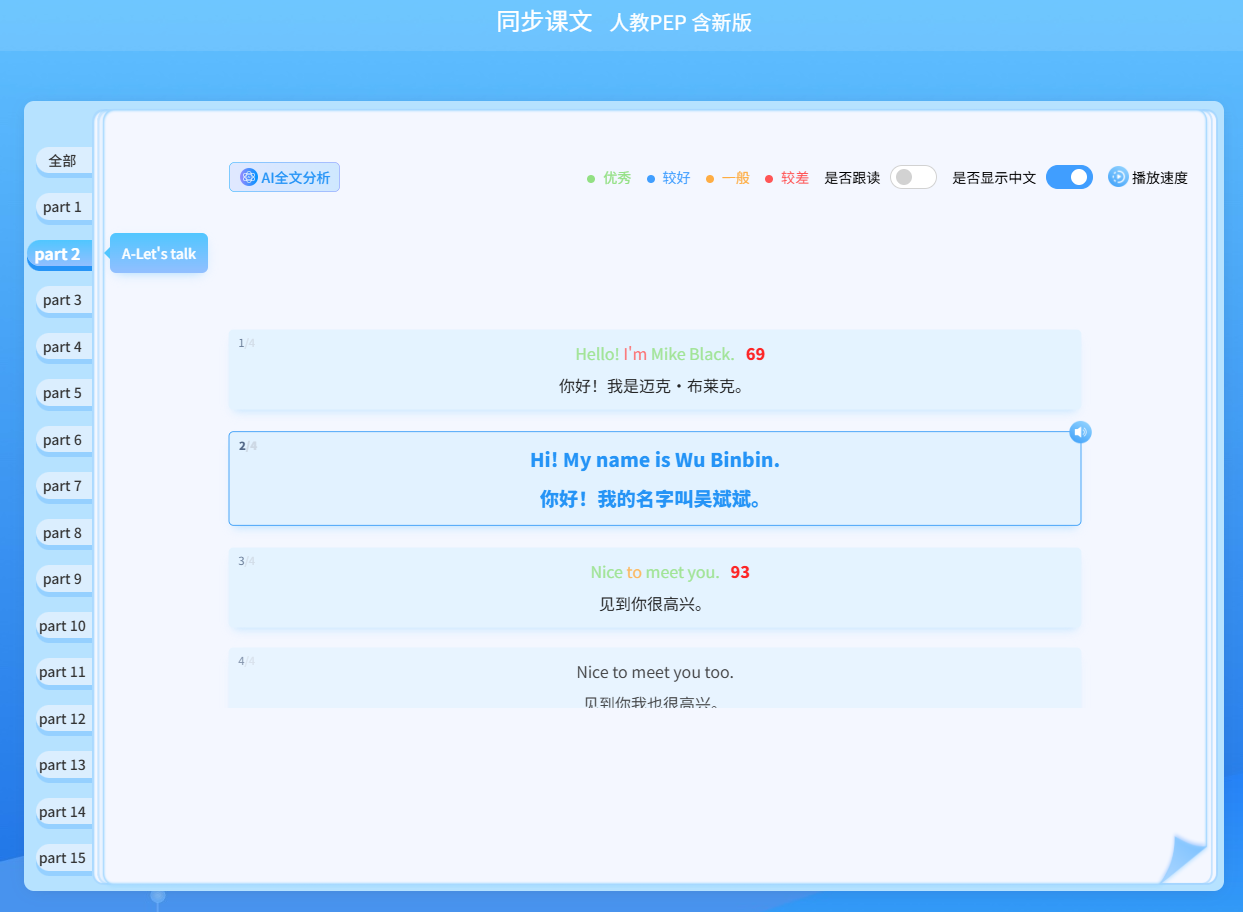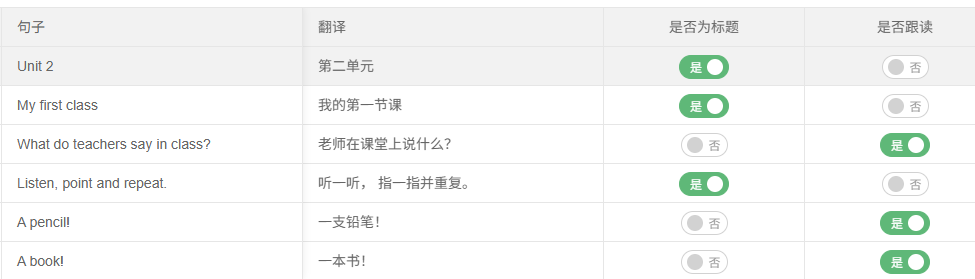 产品中心针对主流教材版本的课文标题,通过人工后台逐一整理、标记。重点解决因标题包含生僻词、复杂句式导致学生发音测评无法通过的问题,让发音练习聚焦于课文核心知识点,有效提高测评通过率,增强学生学习信心与成就感