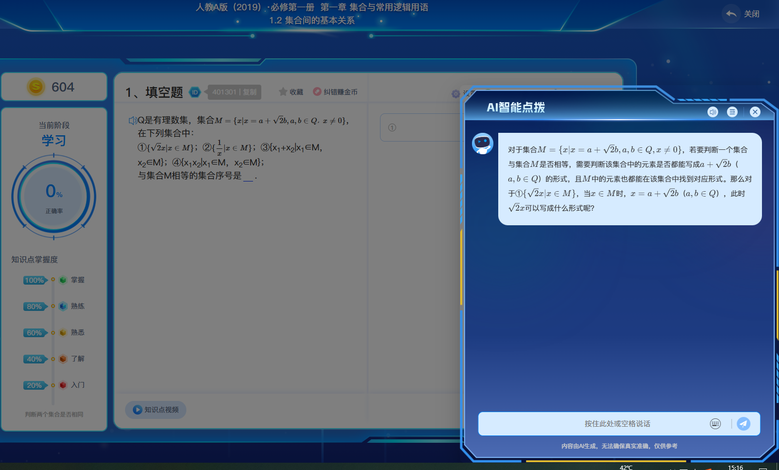 搭载 “AI 智能点拨” 与 “AI 习题多维解析” 功能:针对抽象知识点,通过 AI 智能点拨引导解题思路;每道习题的解析均涵盖知识点定位、解题步骤拆解、帮助学生理清逻辑、掌握方法,高效突破学习瓶颈。