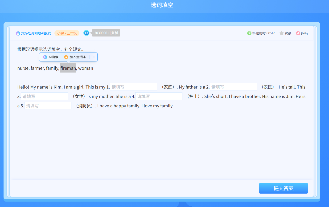 2、选词填空