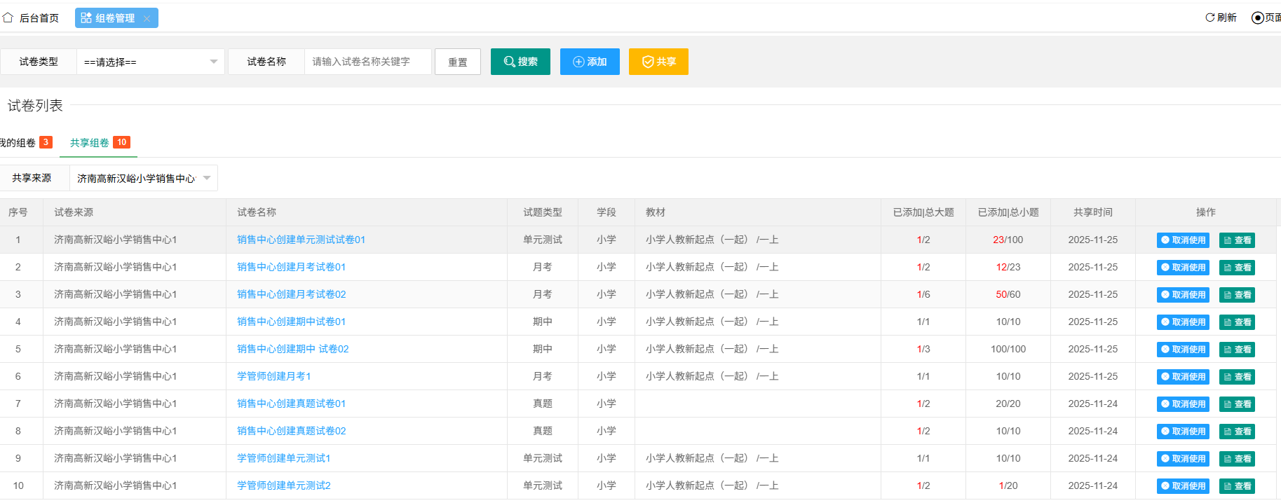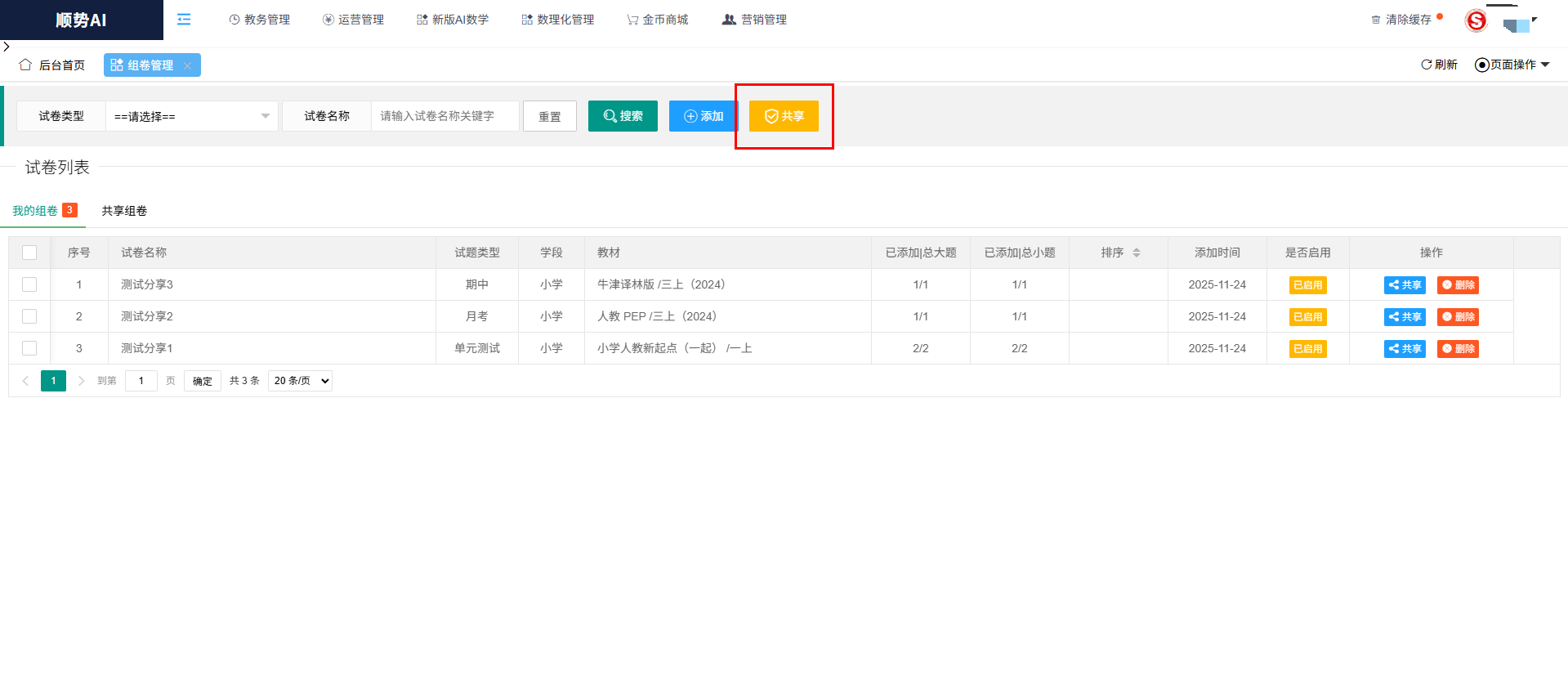 3、查看已分享试卷