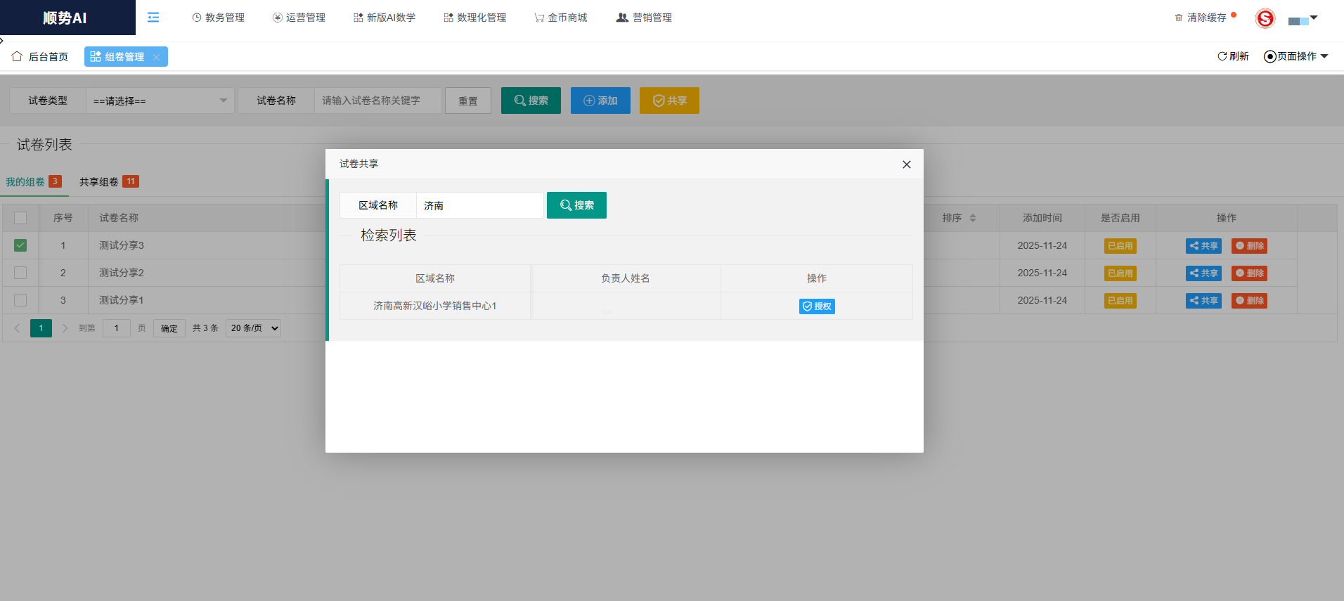 4、新增后台试卷分享功能